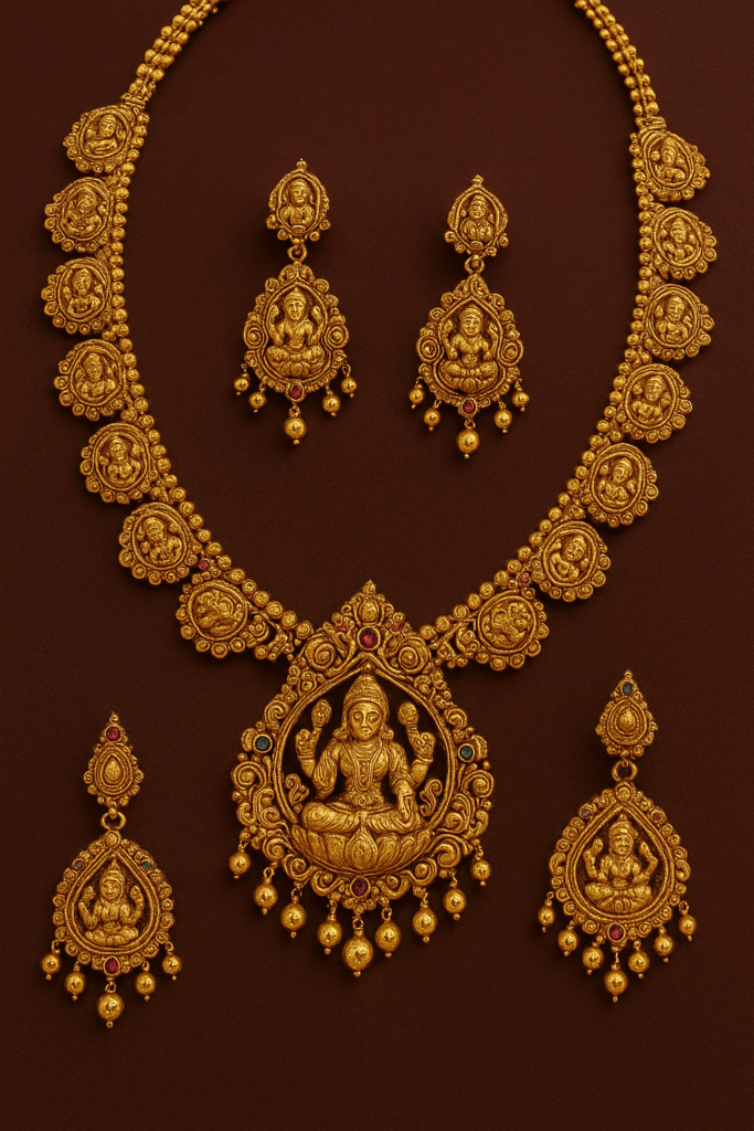 Temple Jewellery Temple Jewellery originated from South India and was initially used to adorn temple idols. It is now worn